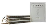 Atrakcyjna szata graficzna, oprawa skóropodobna ze złoceniem na gorąco oraz złoty rant z nadrukiem pierwszokomunijnym, podkreślają niezwykłą dbałość o estetykę pamiątkowego wydania Biblii dla dzieci.