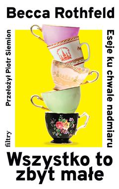 Gdy świat coraz bardziej nakłania nas do umiaru, zbiór esejów Bekki Rothfeld działa jak balsam na duszę wszelkich maksymalistów. W brawurowym stylu amerykańska eseistka broni: łakomstwa, zbieractwa, chaosu, karnawału, ekstazy, retorycznej przesady, a nade wszystko niczym nieskrępowanego zachwytu. Sprzeciwia się współczesnym kodeksom postepowania, według których kluczem do szczęścia jest minimalizm. Bez pardonu dworuje sobie z Marie Kondo i współczesnych odgracaczy wnętrz, którzy nie tylko zamieniają indywidualne mieszkania w zimne, nijakie przestrzenie, lecz również zubożają nas duchowo, czyniąc nasze życie tak nieważkim, że bez żalu będziemy mogli je porzucić. Obrywa się w tej książce współczesnym purytanom, dla których akt seksualny bez dosłownie zwerbalizowanej zgody jest czymś nagannym. Zgody na co? – pyta autorka. Czyż prawdziwie udany seks nie jest zawsze transgresją i transformacją? Nigdy nie wiemy, jakie pragnienia w nas obudzi i w jaki sposób nas przemieni. Wreszcie Rothfeld nie zostawia suchej nitki na modnej praktyce uważności. Mindfulness jest przecież niczym innym jak sprzątaniem własnego umysłu z osądów i ocen. Czy z tak wypranym mózgiem będziemy chcieli zmieniać świat na lepsze? Czy raczej staniemy się sprawnymi trybikami w machinie kapitalizmu?